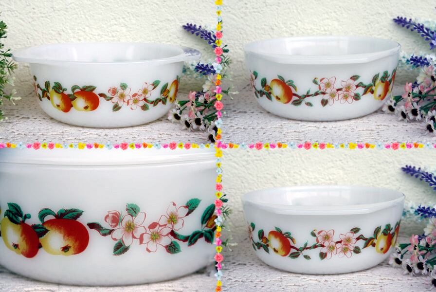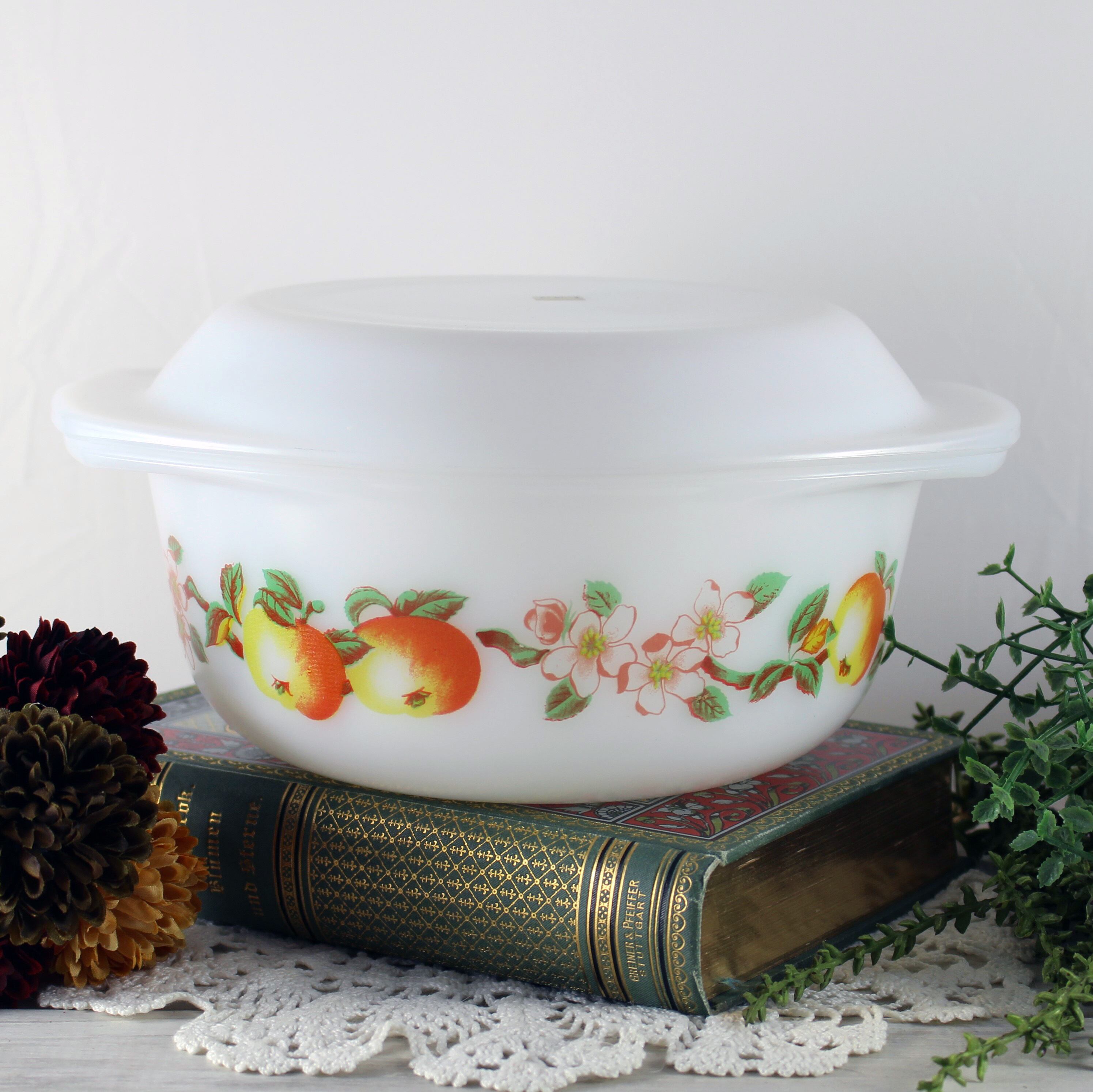 フランス製“ARCOPAL(アルコパル)”のフルーツ柄の大きなキャセロールです。
