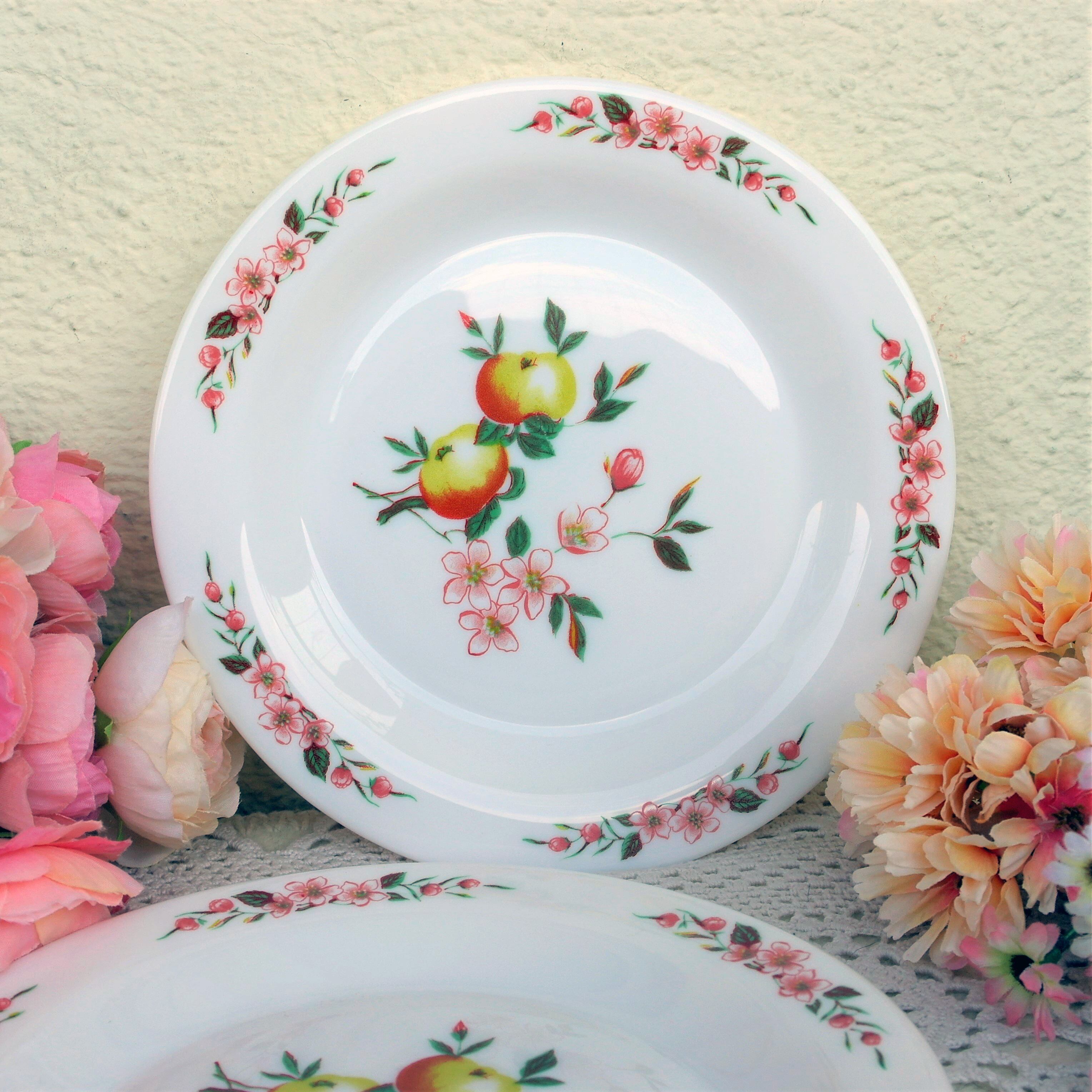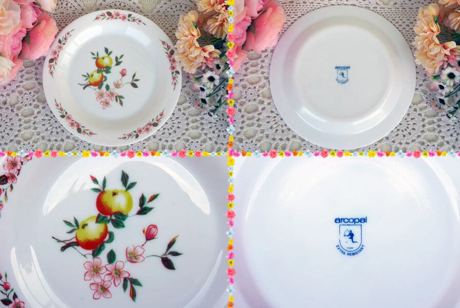 フランス製“ARCOPAL(アルコパル)”のフルーツ柄のデザート皿2枚セットです。