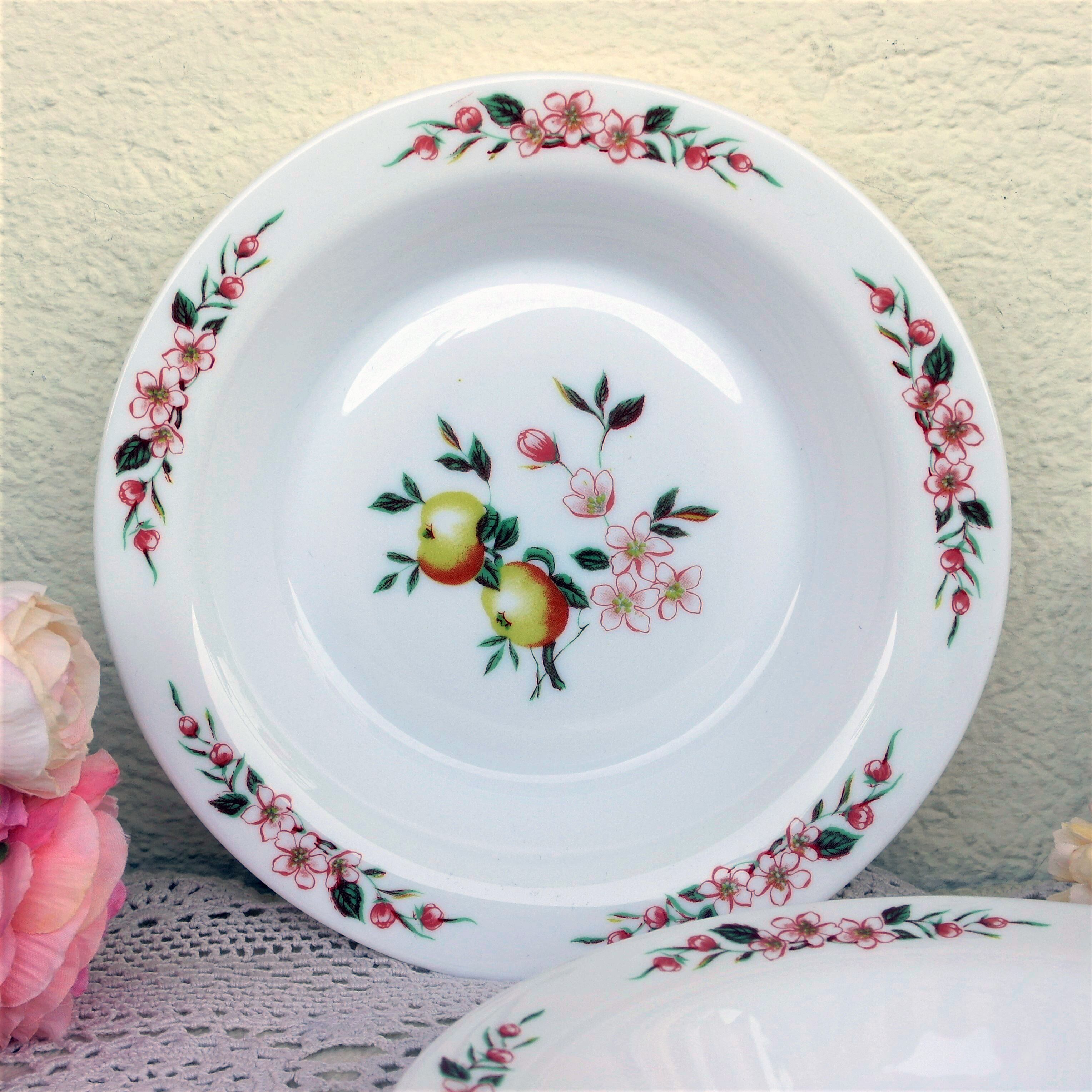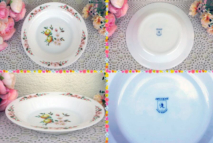 フランス製“ARCOPAL(アルコパル)”のフルーツ柄のスープ皿2枚セットです。