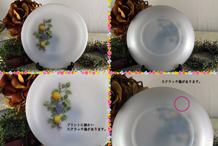 皿の後ろに数ヶ所傷があり、2枚の内1枚は裏のふちにチップが1箇所あります。