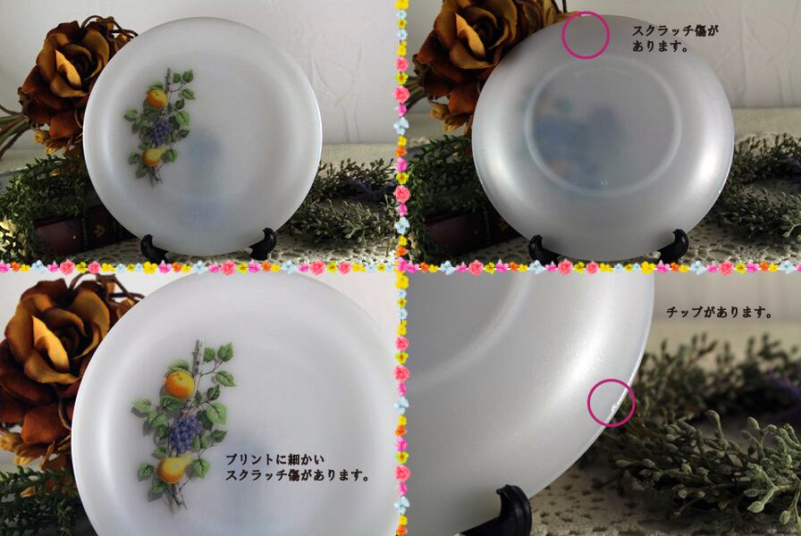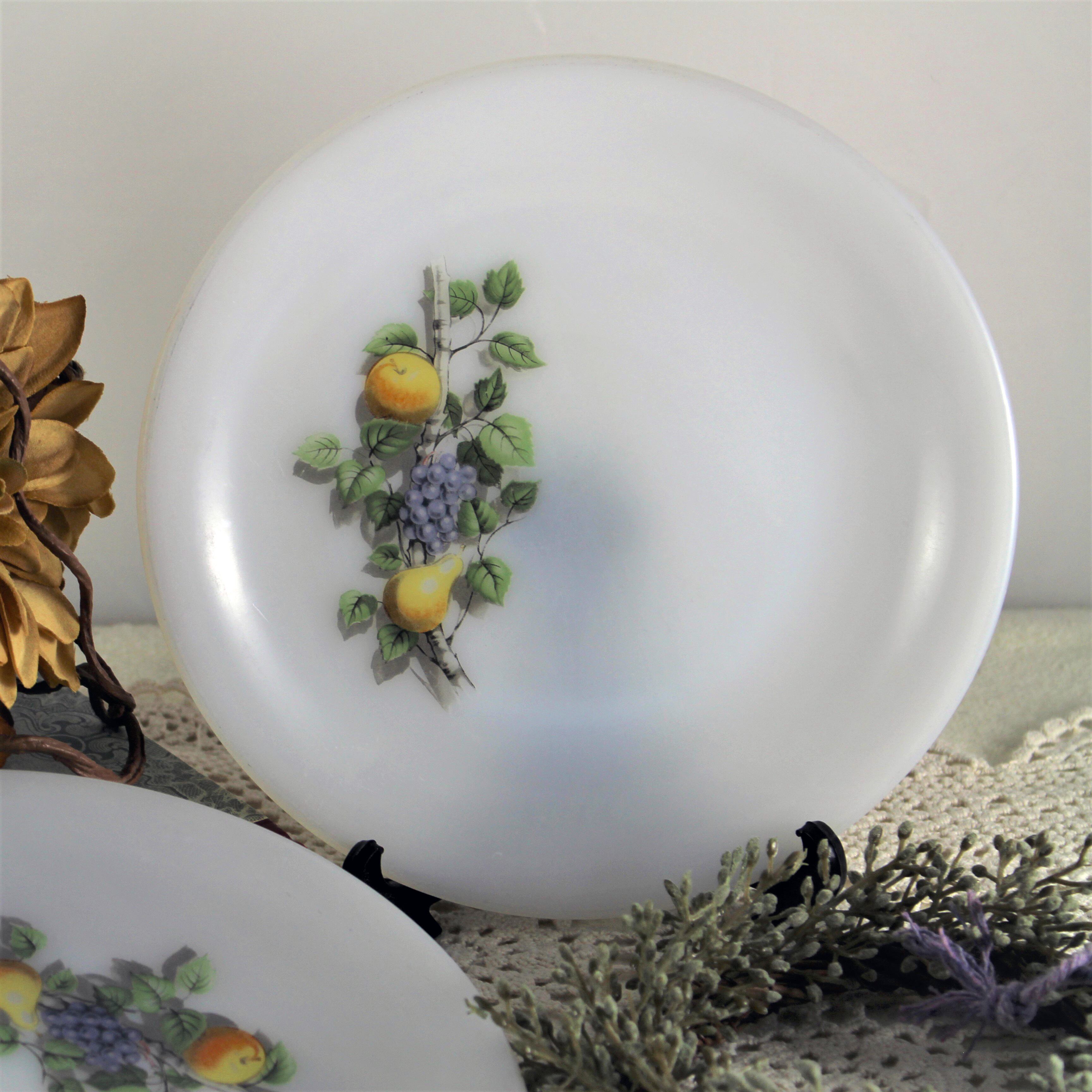 フランス製“ARCOPAL(アルコパル)”のシックなフルーツ柄のデザート皿2枚セットです。