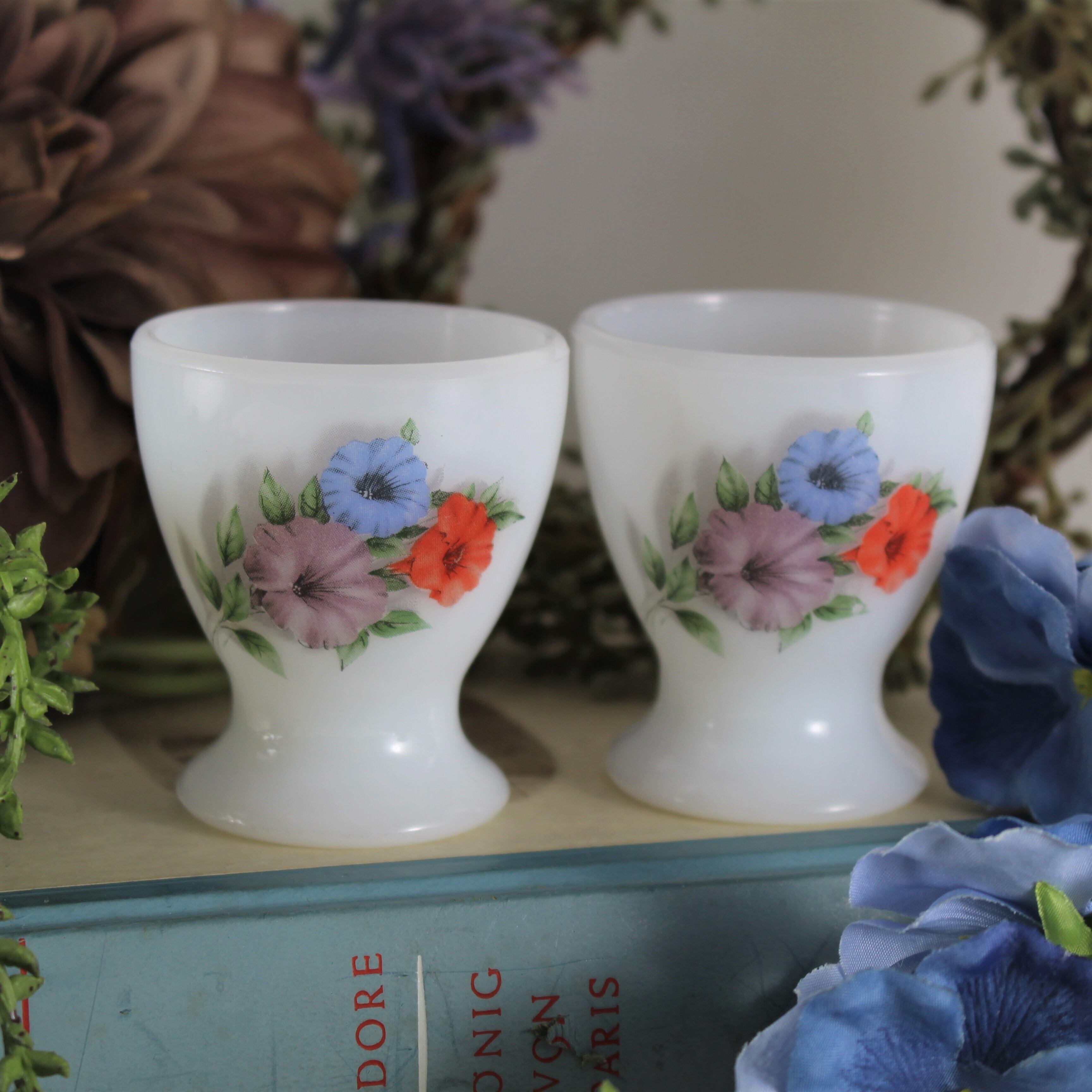 フランス製“ARCOPAL(アルコパル)”の朝顔のエッグカップ2個セットです。