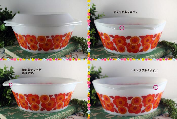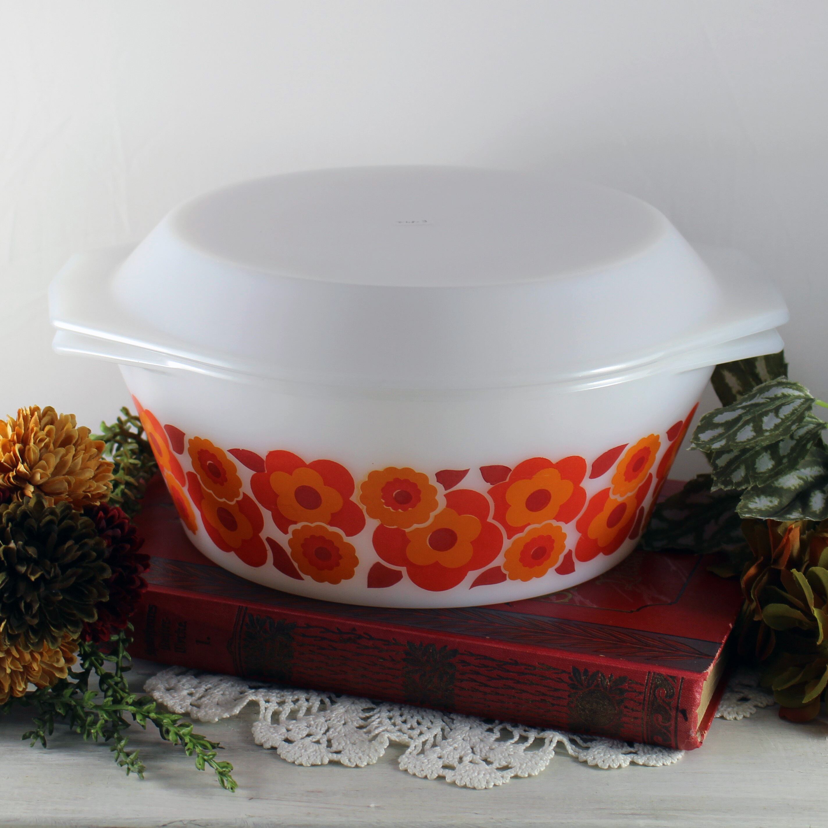 フランス製“ARCOPAL(アルコパル)”の赤いロータス柄のキャセロールです。