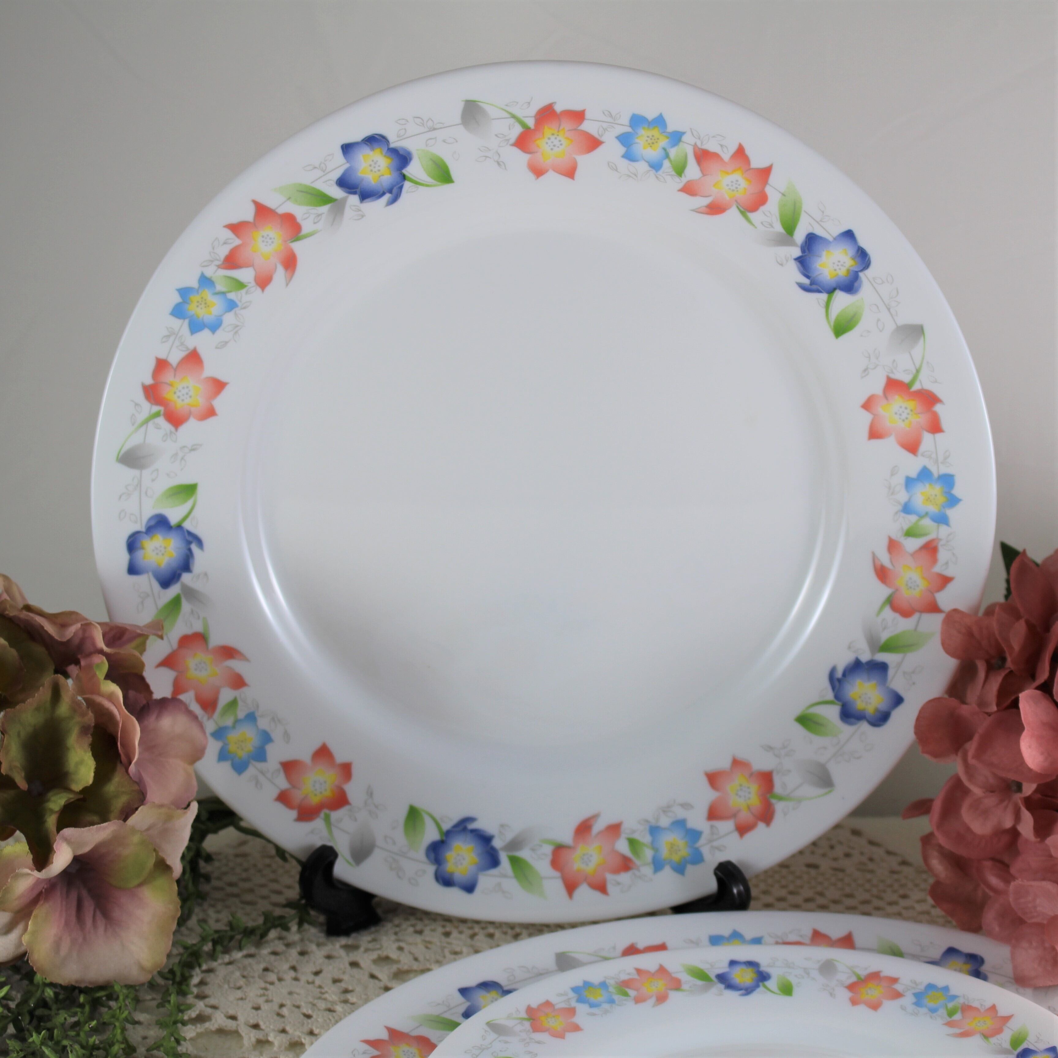 フランス製“ARCOPAL(アルコパル)”の花柄のディナー皿2枚とデザート皿2枚のセットです。