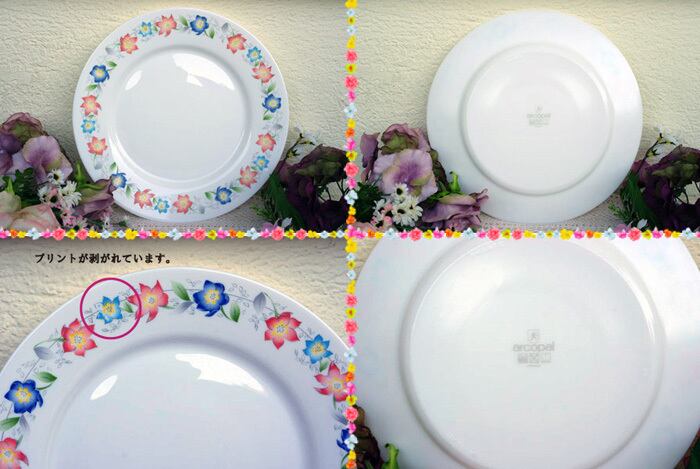 ディナー皿の2枚の内1枚に1箇所プリントが剥がれている箇所があります。