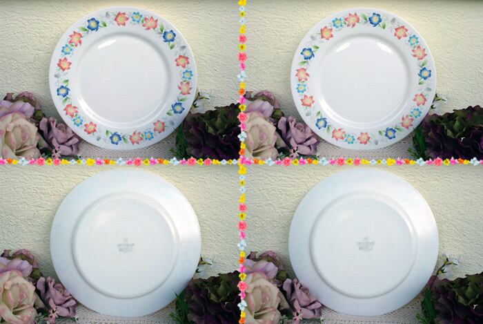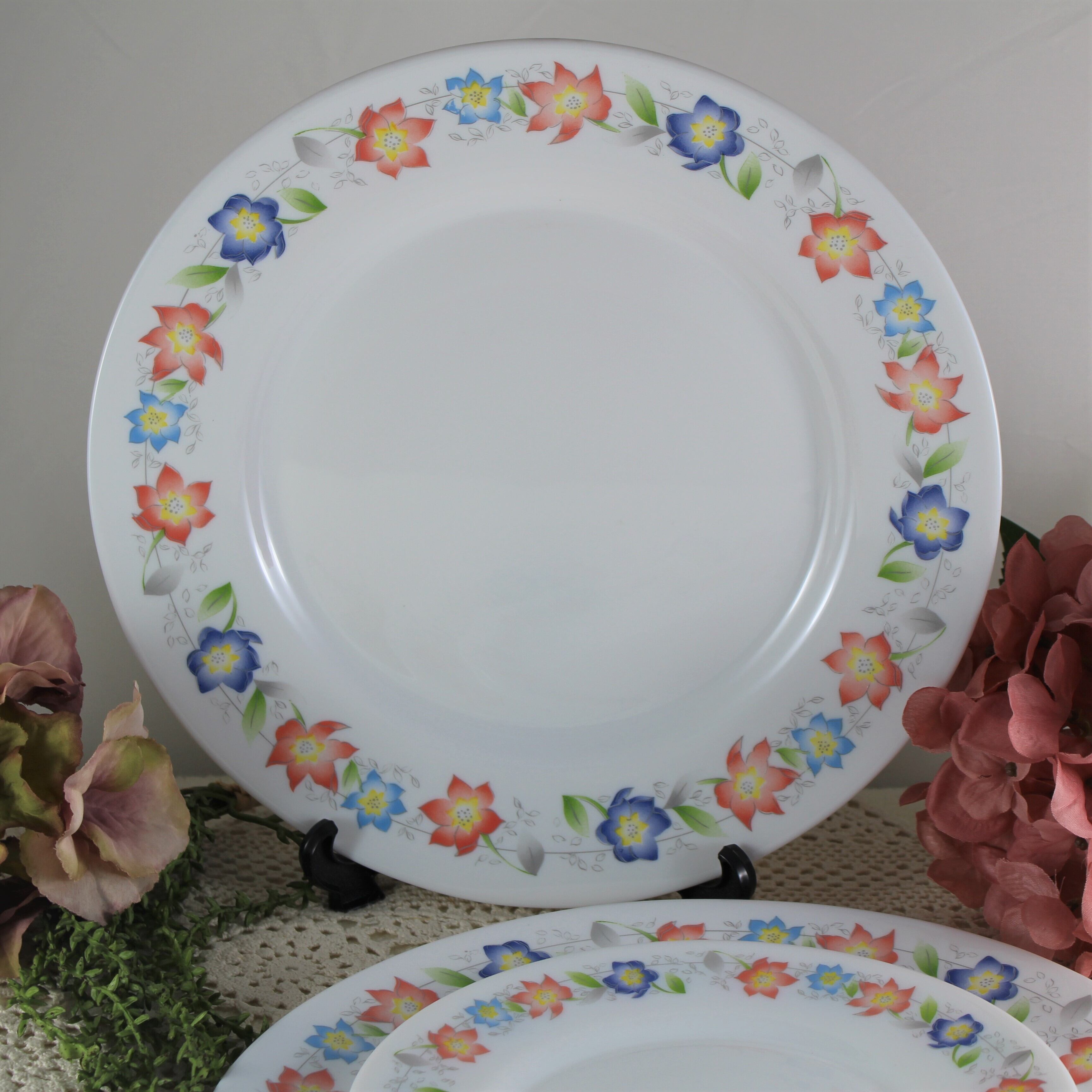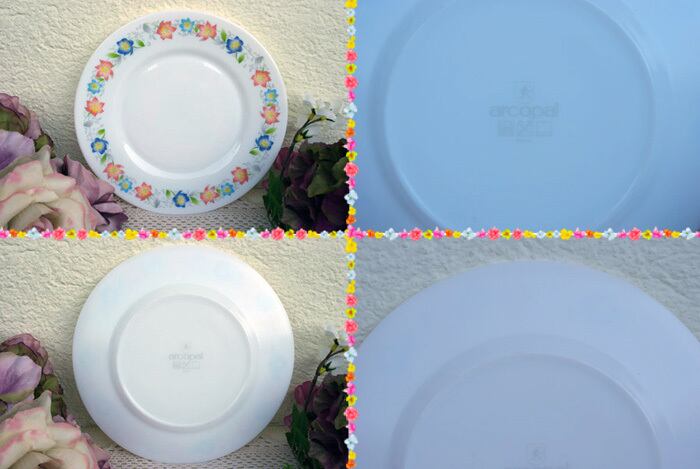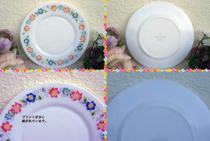 フランス製“ARCOPAL(アルコパル)”の花柄のディナー皿2枚とデザート皿2枚のセットです。