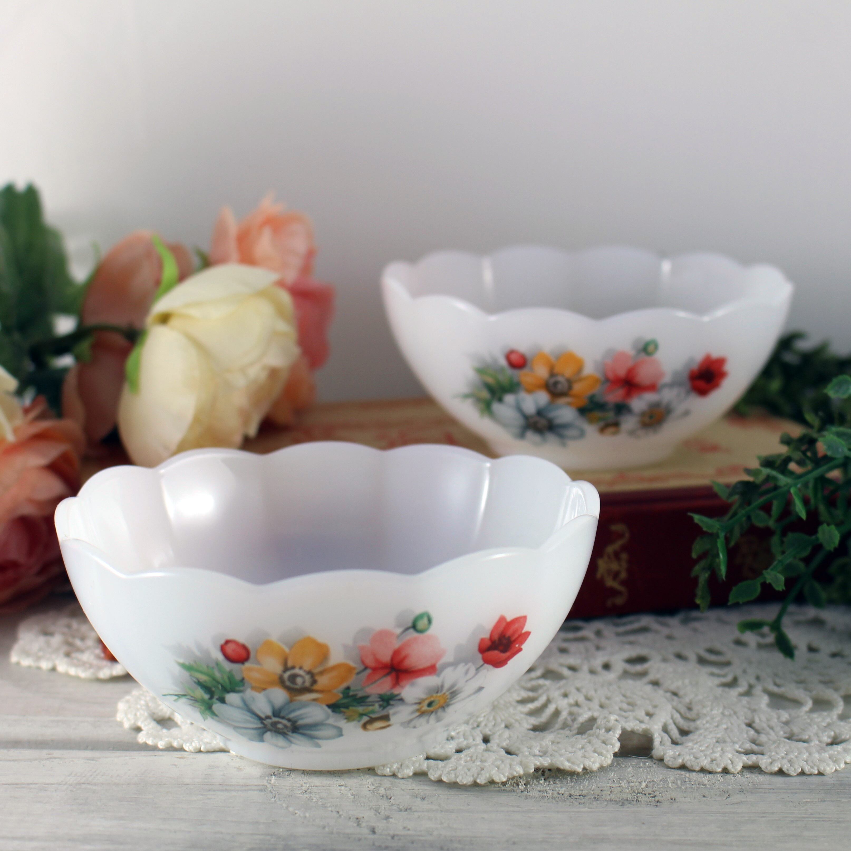フランス製“ARCOPAL(アルコパル)”の花柄の小さなボウル2個セットです。