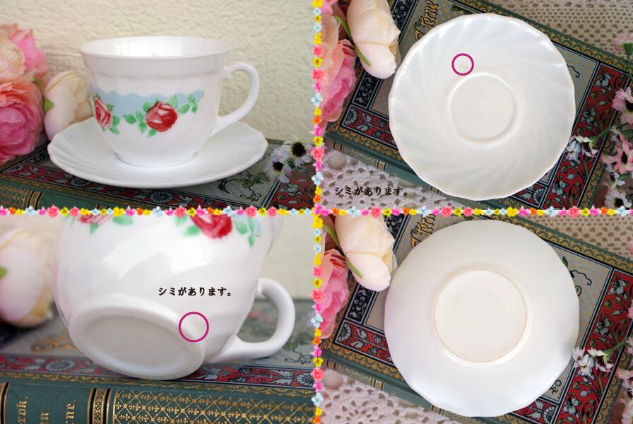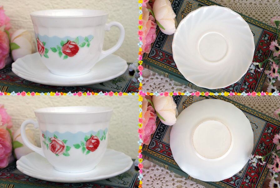 フランス製“ARCOPAL(アルコパル)”の薔薇柄のカップ&ソーサー2客セットです。