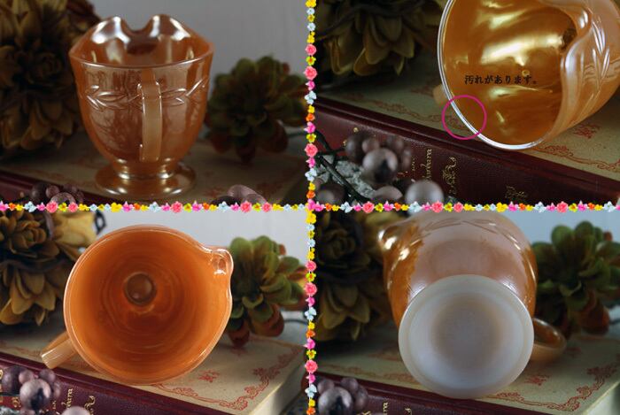 アメリカのアンカーホッキング社 (Anchor Hocking) のファイヤーキング(Fire-King)のピーチラスターのミルクカップです。