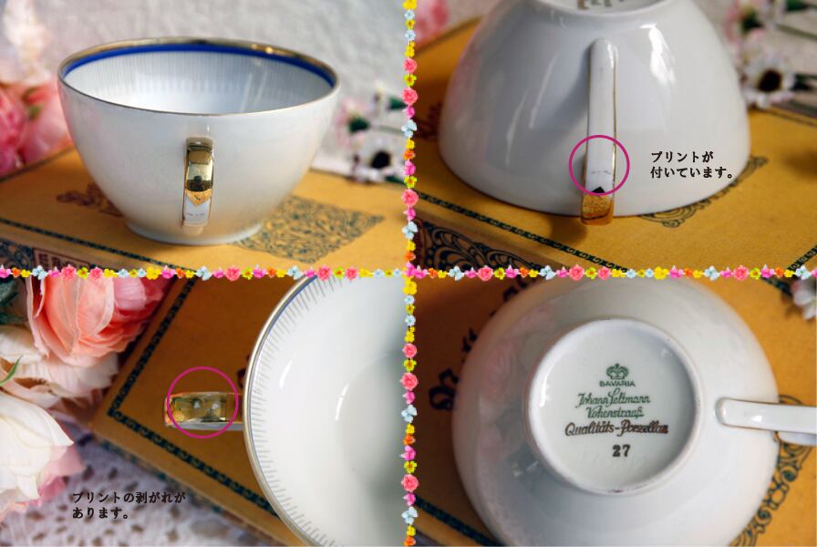 カップは持ち手部分に塗料が少し付いている箇所と、塗料の剥がれがあります。