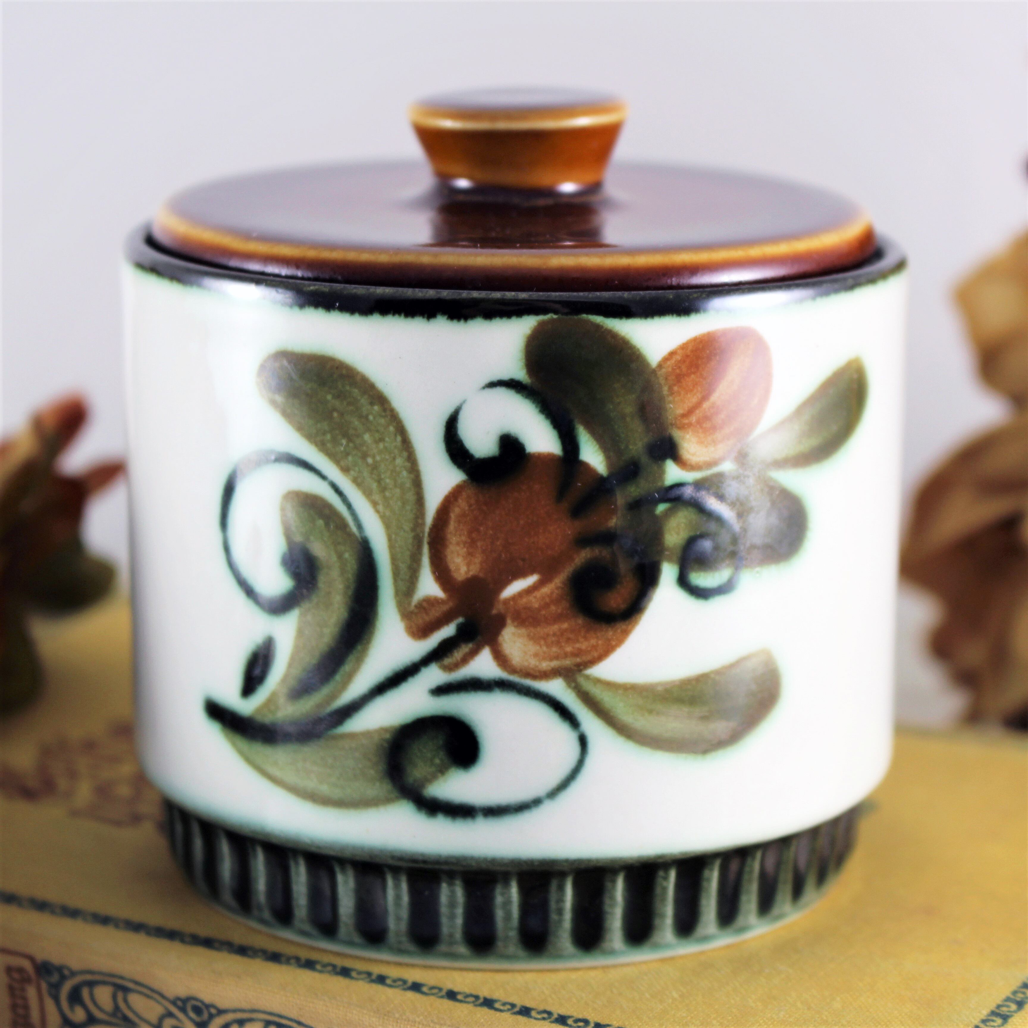 ハンドペイントの温もりあるシュガーポットです。