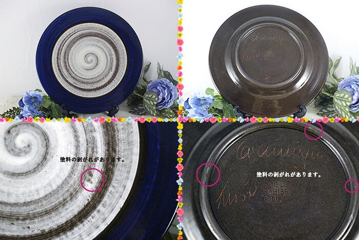 もう1枚は、お皿の表面と裏の縁に数カ所塗料の剥がれている箇所があります。