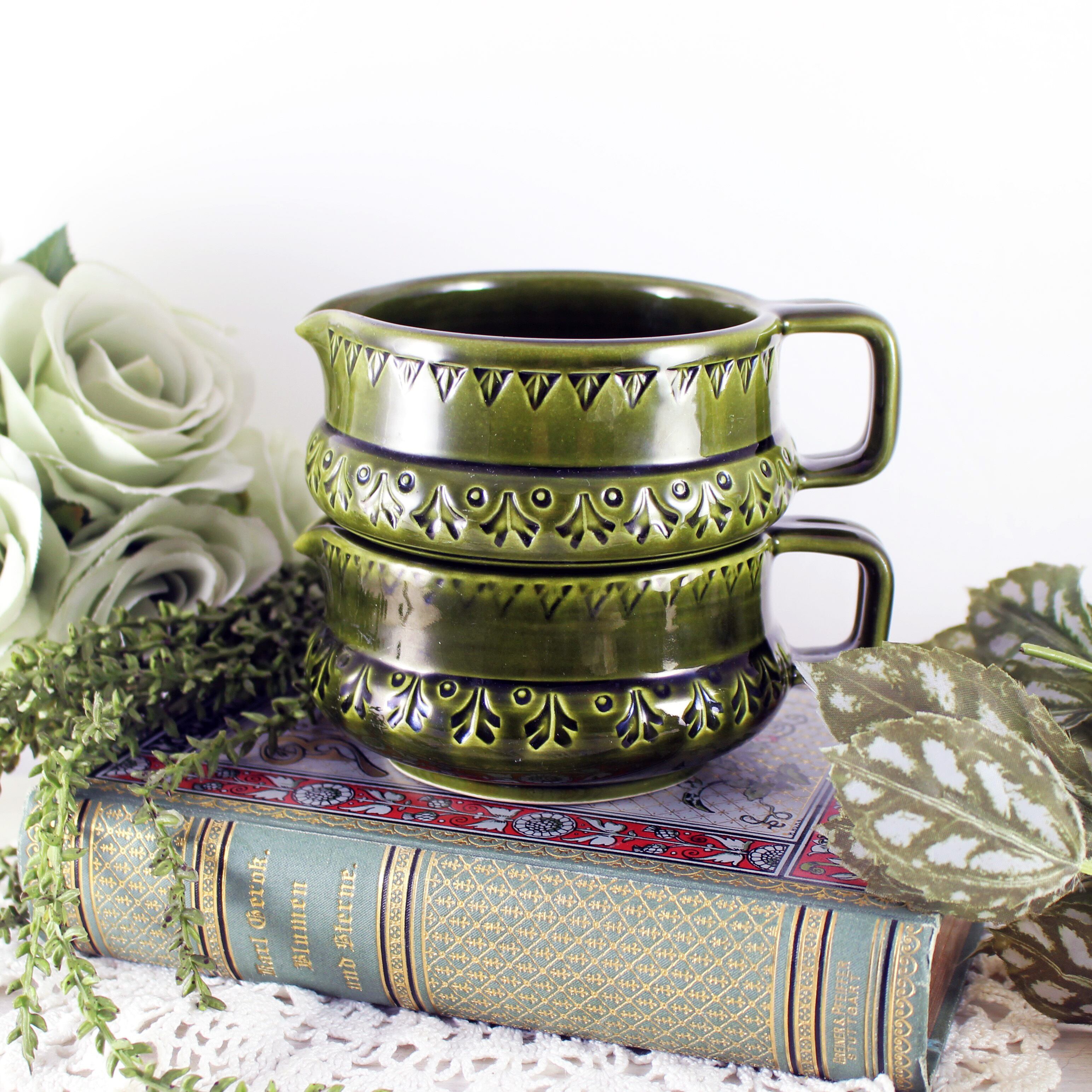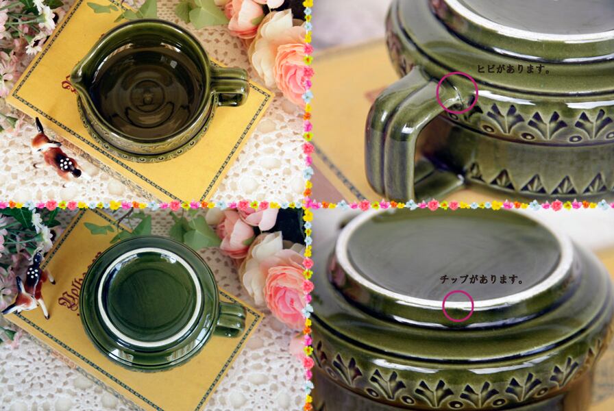 ダークグリーンのスープカップ2個セットです。