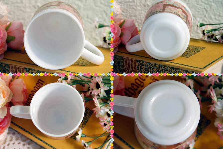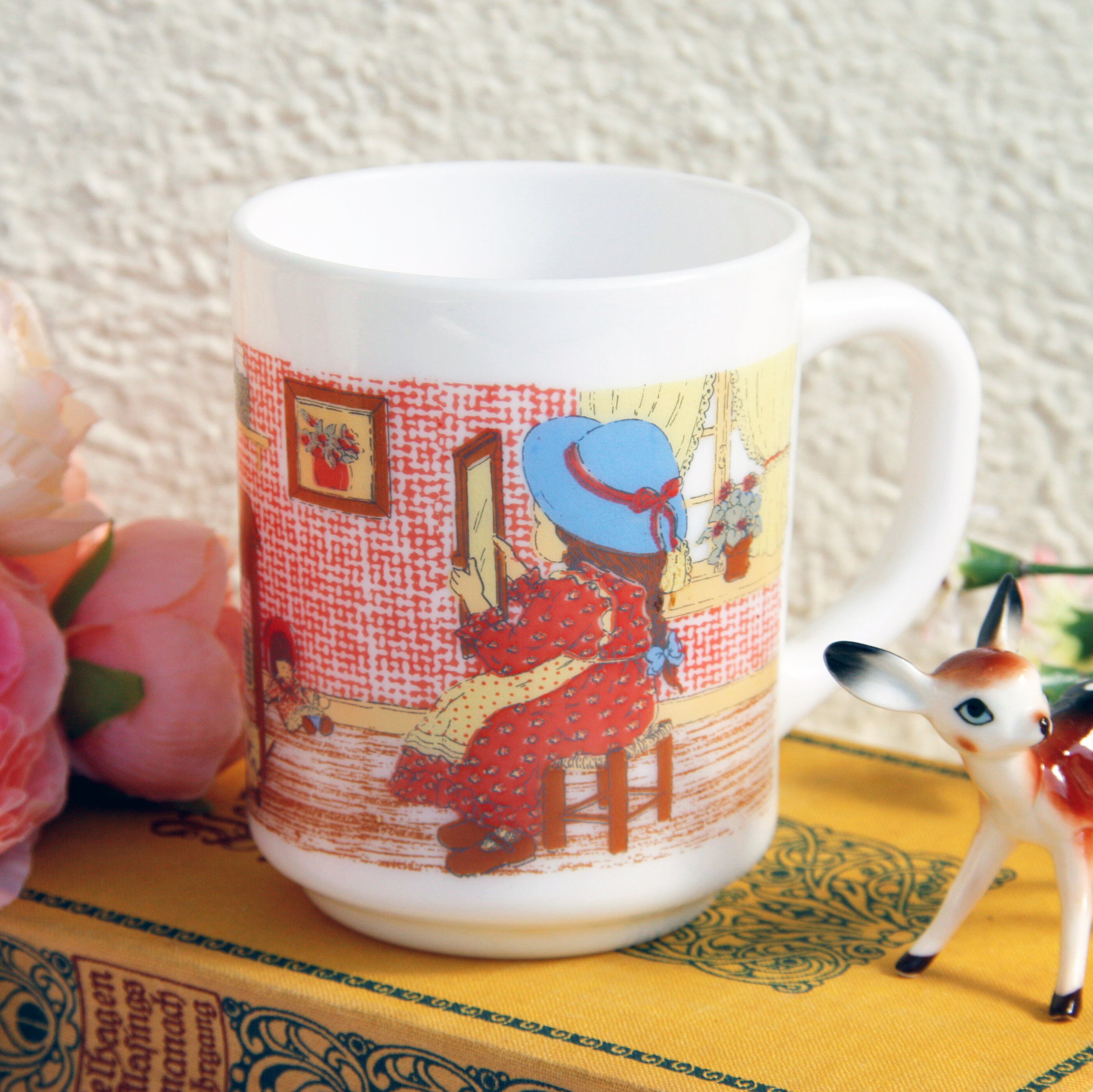 レトロで可愛らしい部屋に女の子が椅子に腰かけて、鏡を覗いているアルコパルのシリーズでも珍しいマグカップ。