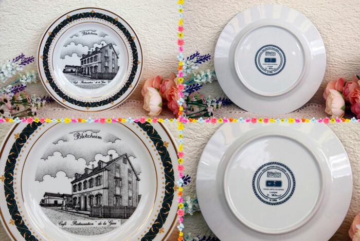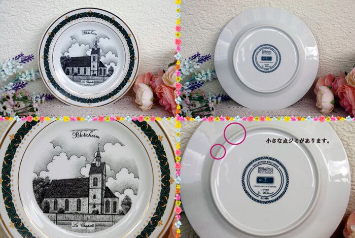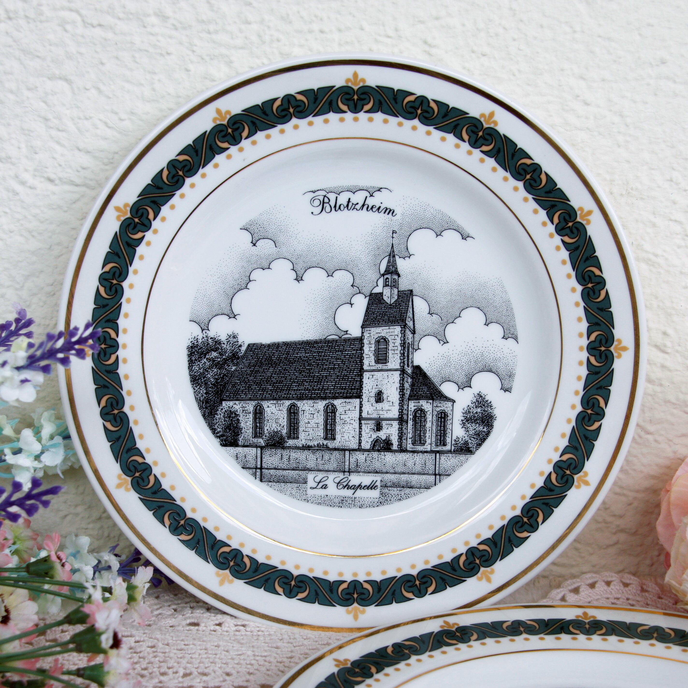 お皿にはフランスのアルザス地方の街Blotzheimの“La Chapelle”と“Café-Restaurtion “de la gare” ”の絵がそれぞれ描かれています。