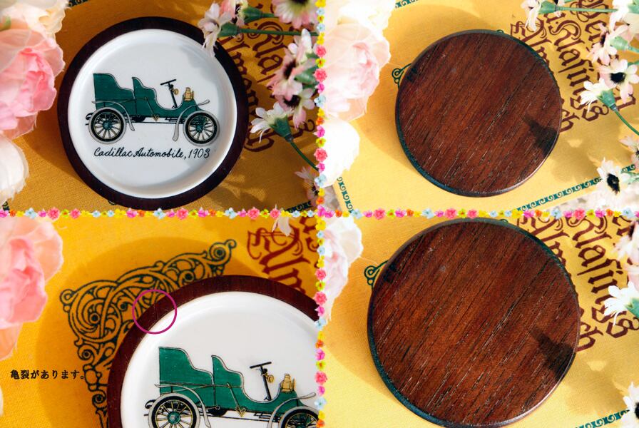 4枚の内1枚のコースターには表面の木製部分に亀裂が1箇所あります。