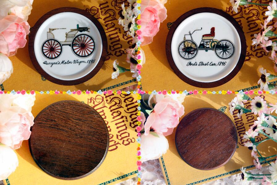 ヴィンテージカーの柄が可愛らしいコースター4枚セットです。